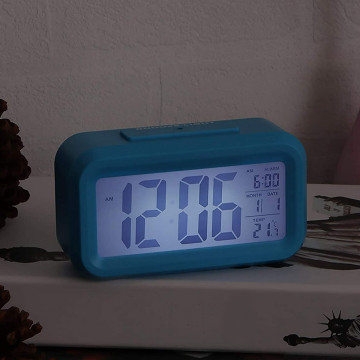 Reloj Digital con Alarma, Indicador de temperatura, luz LED. Ideal para mesa de luz o escritorio. La luz LED queda encendida de manera suave para poder ser vista en la noche.