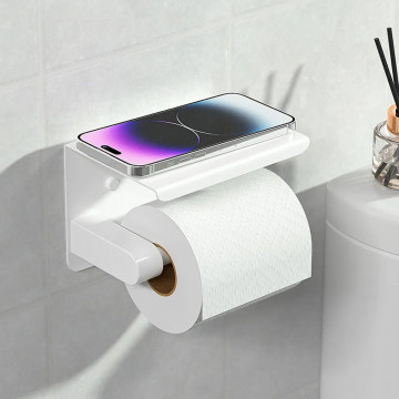 Este soporte de papel higiénico con estante es la solución ideal para mantener tus accesorios organizados y tu baño con estilo. Su diseño práctico y moderno permite instalarlo fácilmente, ofreciendo funcionalidad y durabilidad para el uso diario.