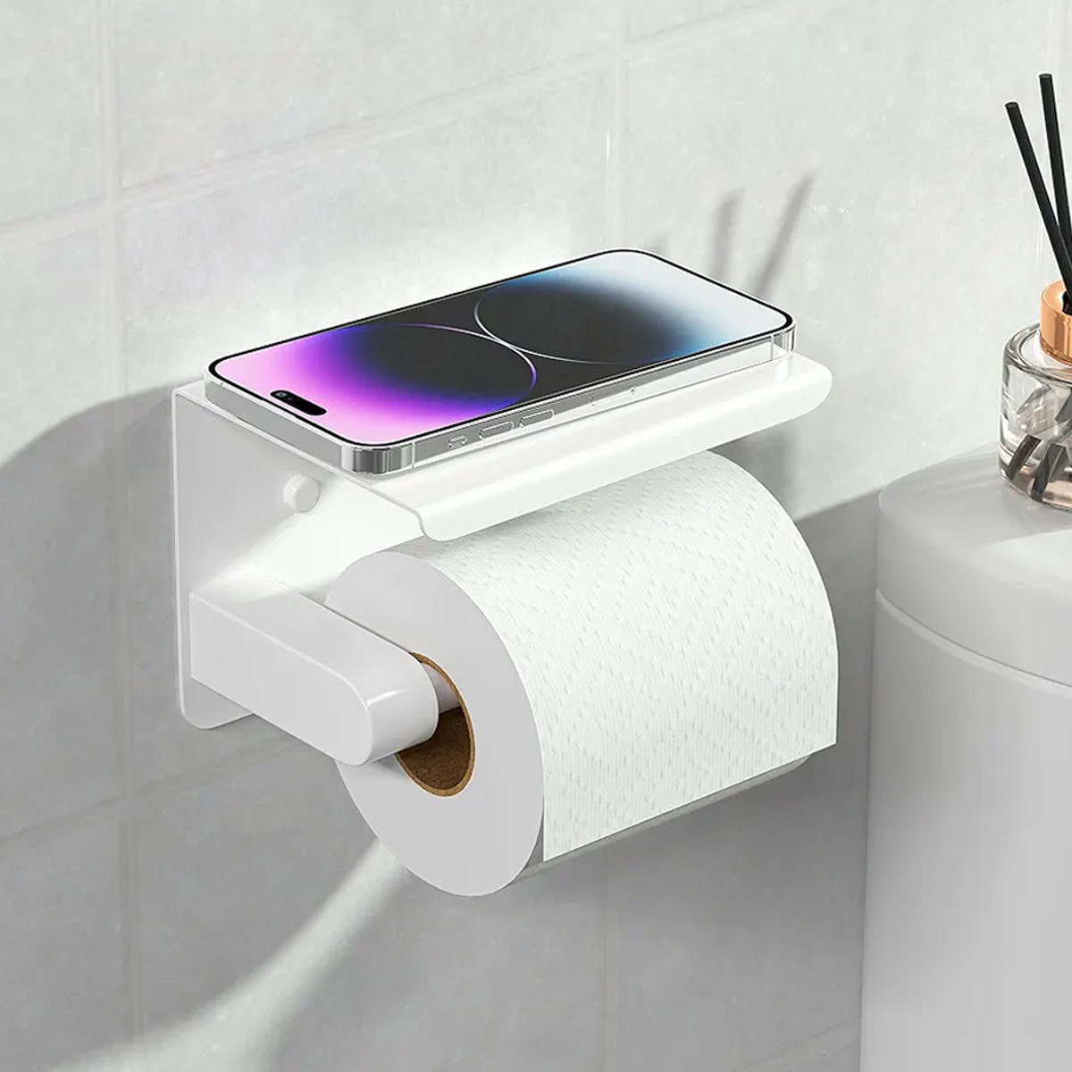 Porta rollo Papel Higienico de Metal con estante
