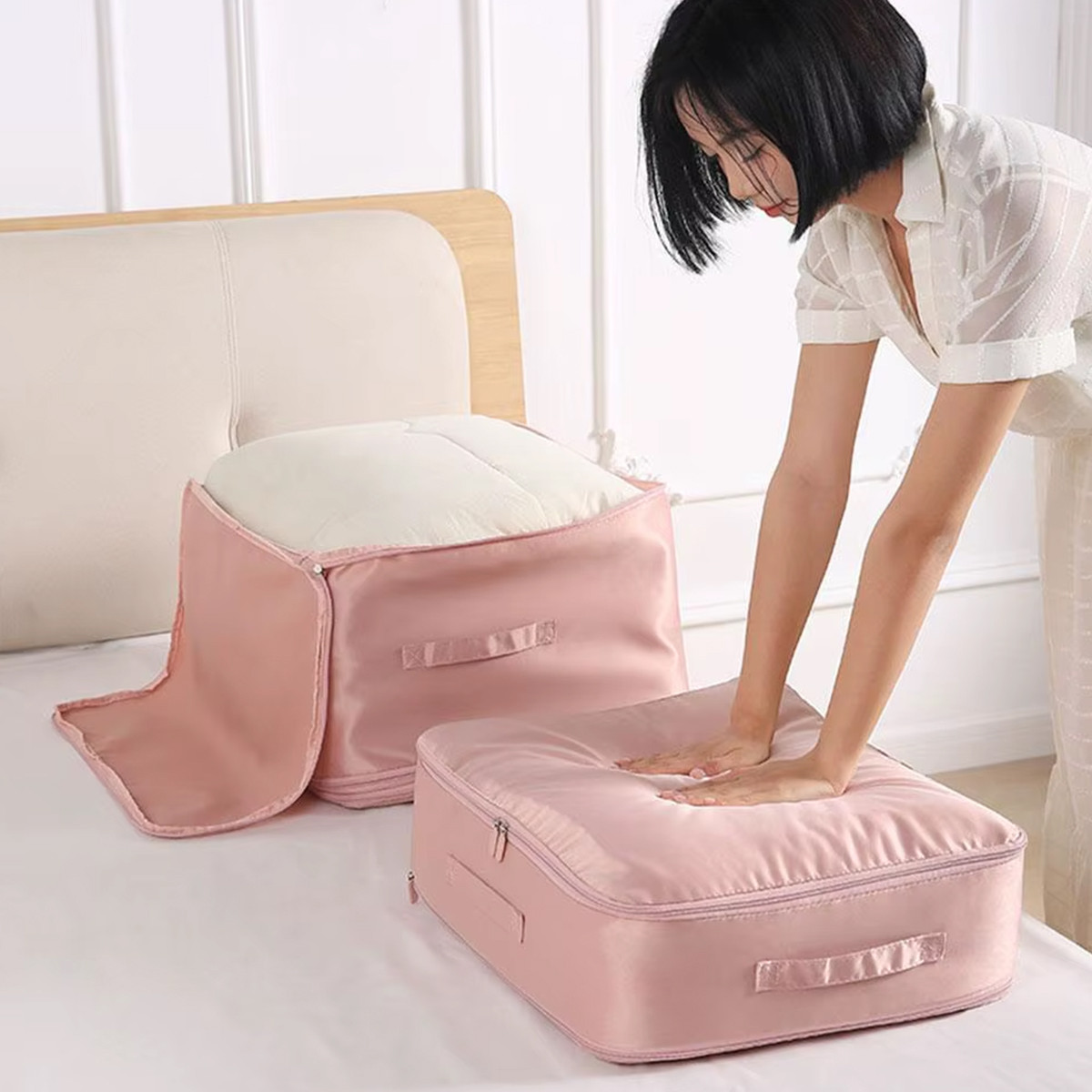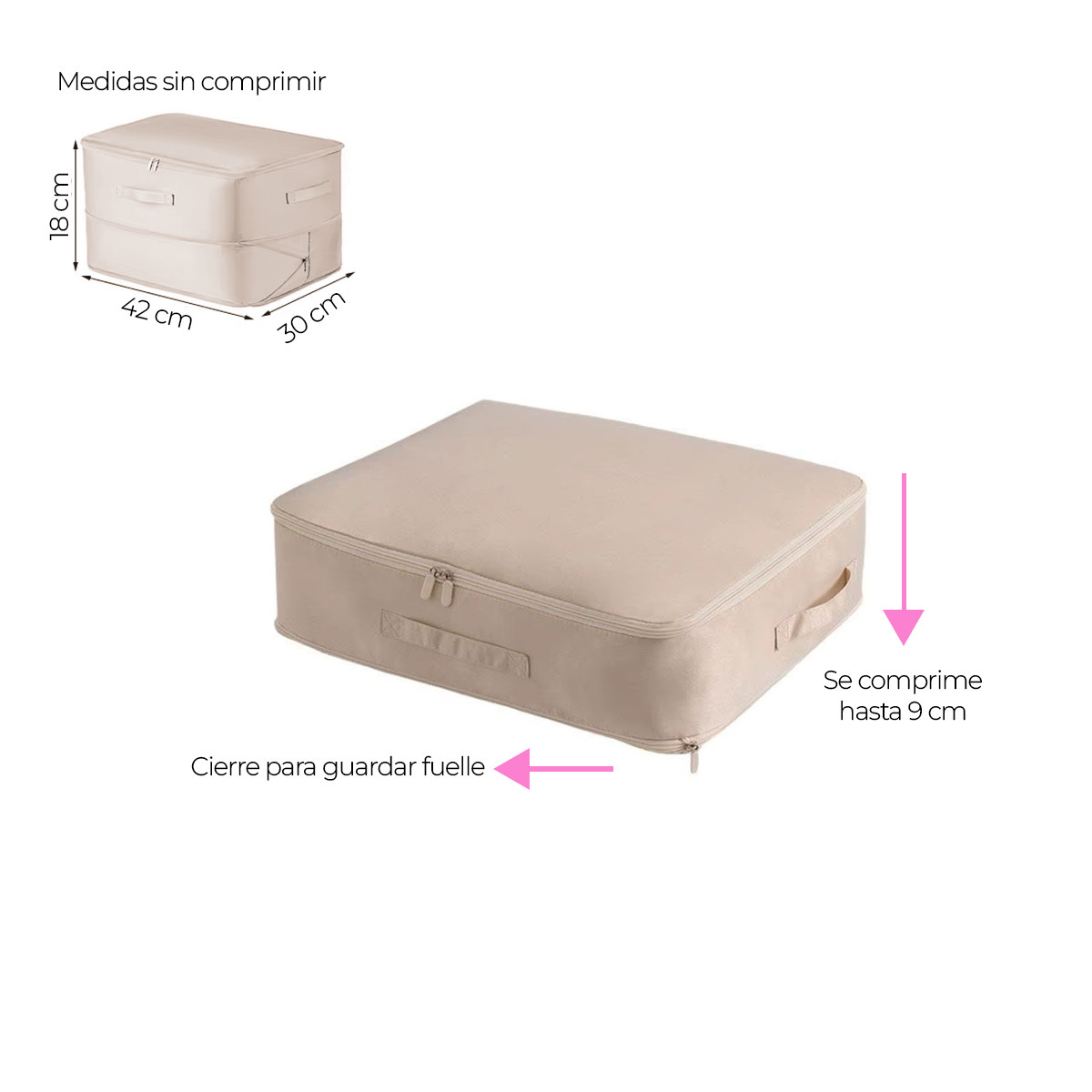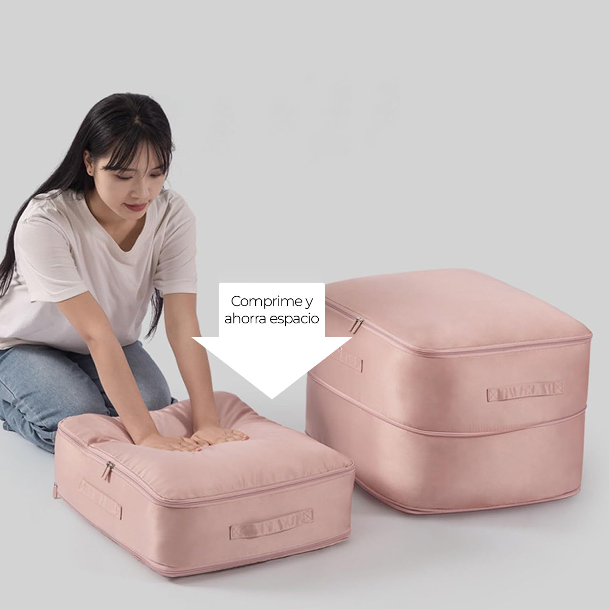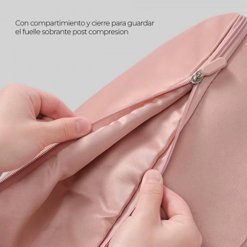 Sistema comprimible que reduce el volumen sin necesidad de aspiradora.